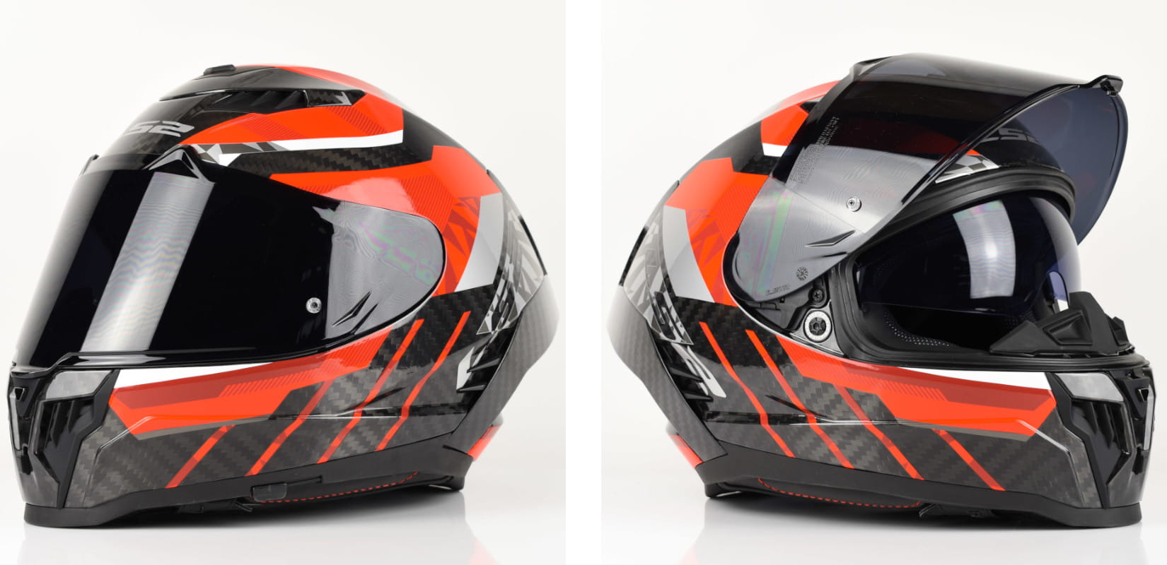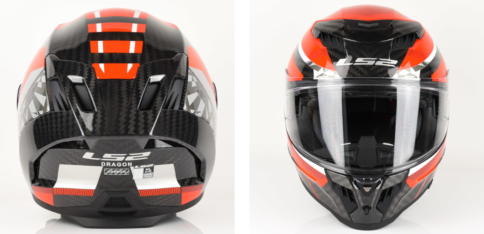 Kask LS2 FF807 Dragon Carbon, Pinlock® 120 MaxVision™, dodatkowa ciemna szyba, deflektor nosa, podbródek, torba na kask, odblaskowe naklejki.