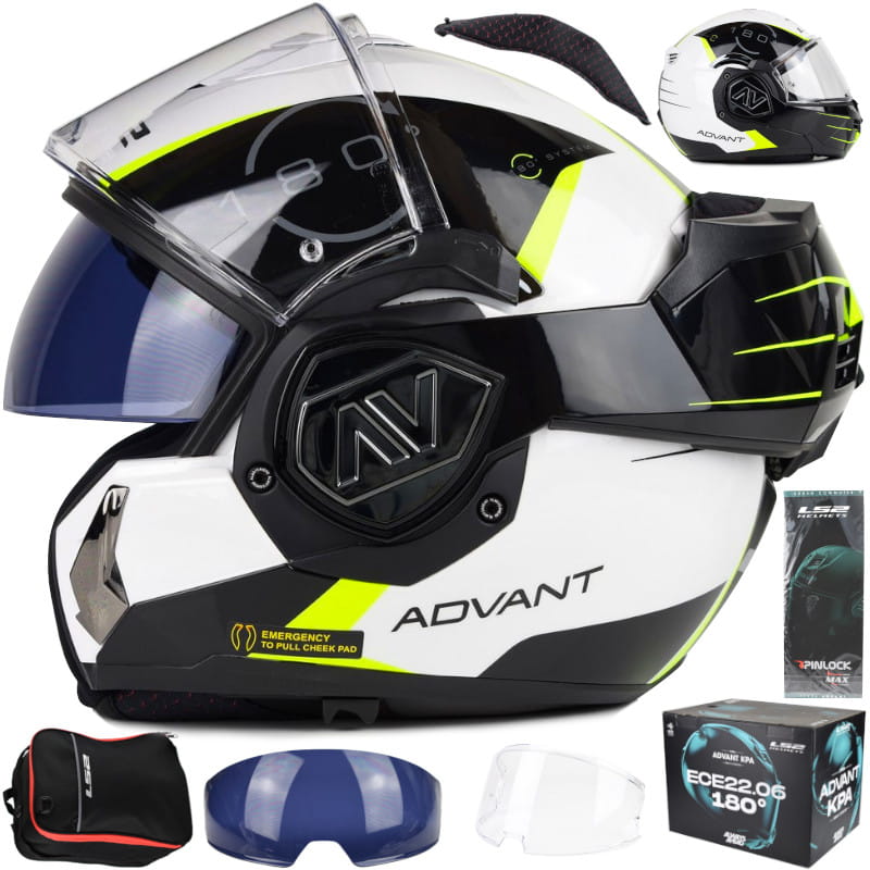 LS2 FF906 Advant to nowoczesny kask modularny, który kontynuuje legendę bestsellerowego modelu LS2 Valiant, oferując jeszcze lepszą funkcjonalność, wygodę i bezpieczeństwo. Dzięki przeprojektowanej konstrukcji i zaawansowanym metodom produkcji model udało się odchudzić, osiągając wagę jedynie 1700 ± 50 g, co czyni go jednym z najlżejszych kasków typu flip-up spełniających normę ECE 22.06. Skorupa wykonana z nowoczesnego materiału KPA® zapewnia wysoką odporność na uderzenia oraz elastyczność, zachowując jednocześnie niską masę. Podwójna homologacja P/J umożliwia legalną jazdę zarówno w pozycji otwartej, jak i zamkniętej. W standardzie kask wyposażono w Pinlock®, zintegrowaną blendę przeciwsłoneczną, wysokiej jakości wizjer oraz system awaryjnego zwalniania poduszek policzkowych. Advant jest także przygotowany do montażu dedykowanego interkomu LS2, co czyni go idealnym wyborem do turystyki, jazdy miejskiej i dalekich podróży.